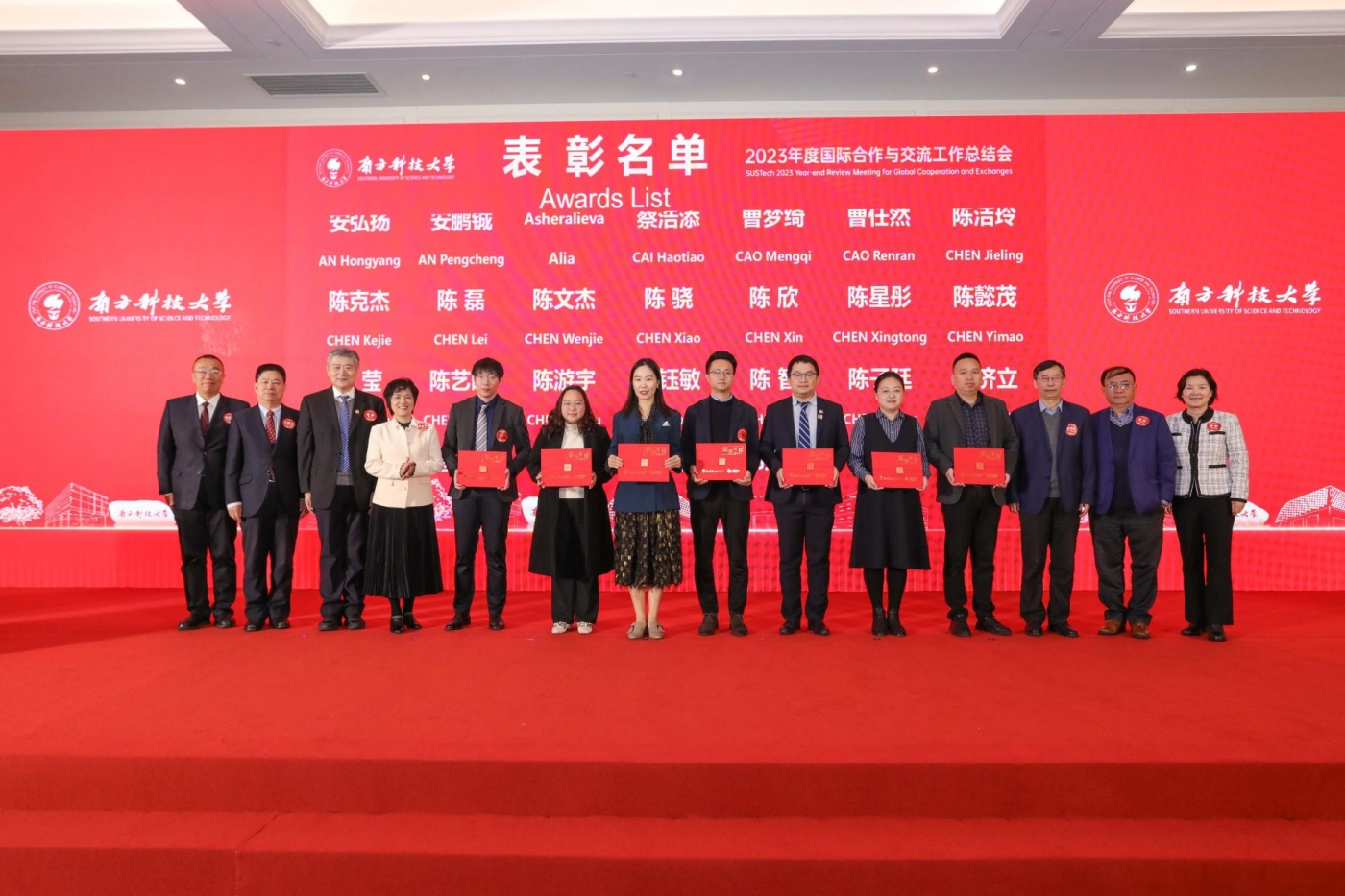 会上,学校对一年来为国际合作交流工作作出突出贡献的教职员工进行表彰。曹赛先、金李、理学院院长俞书宏院士、创新创业学院院长刘科院士、陈思奇、王鹏飞为被表彰的师生代表颁发证书。