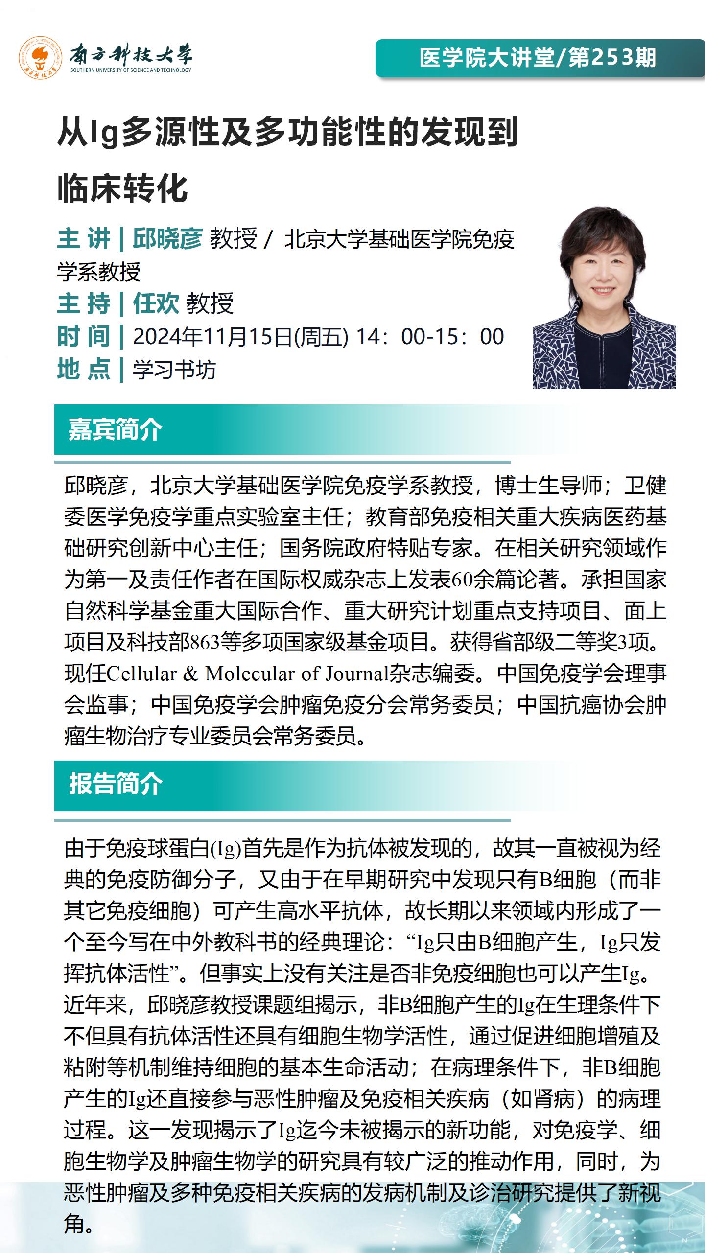 演讲者:邱晓彦 教授