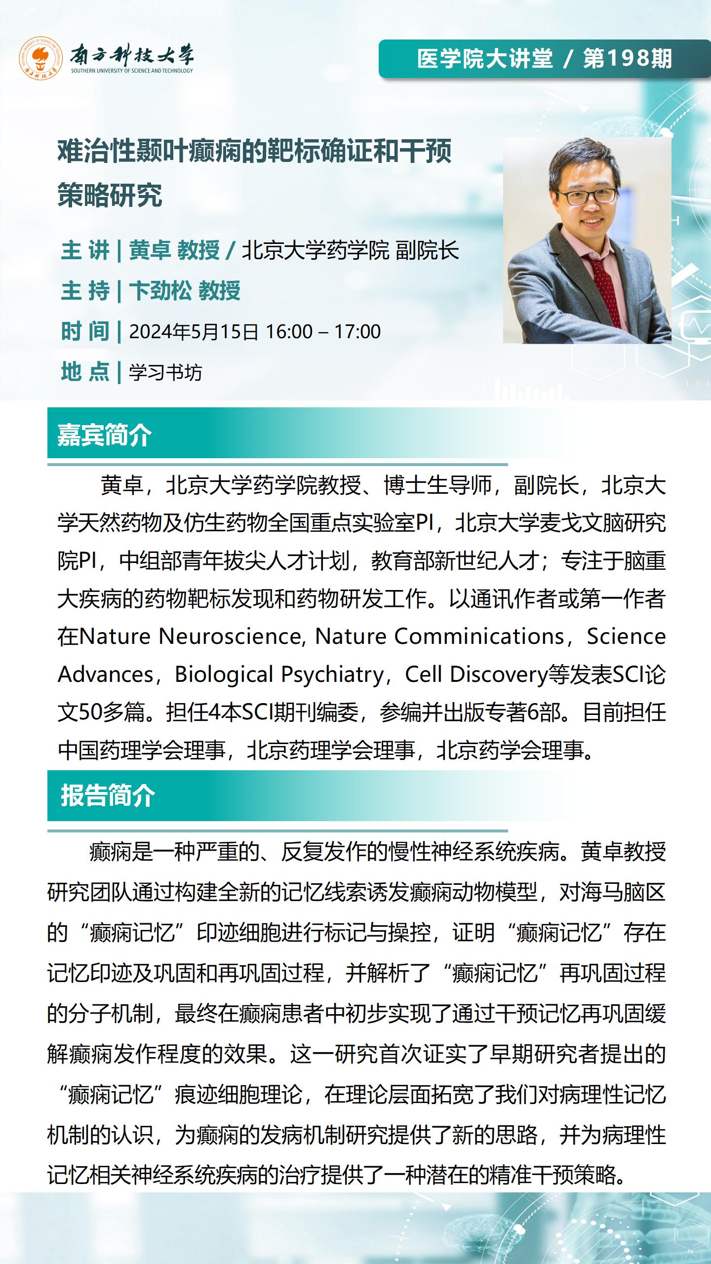 演讲者:黄卓 教授