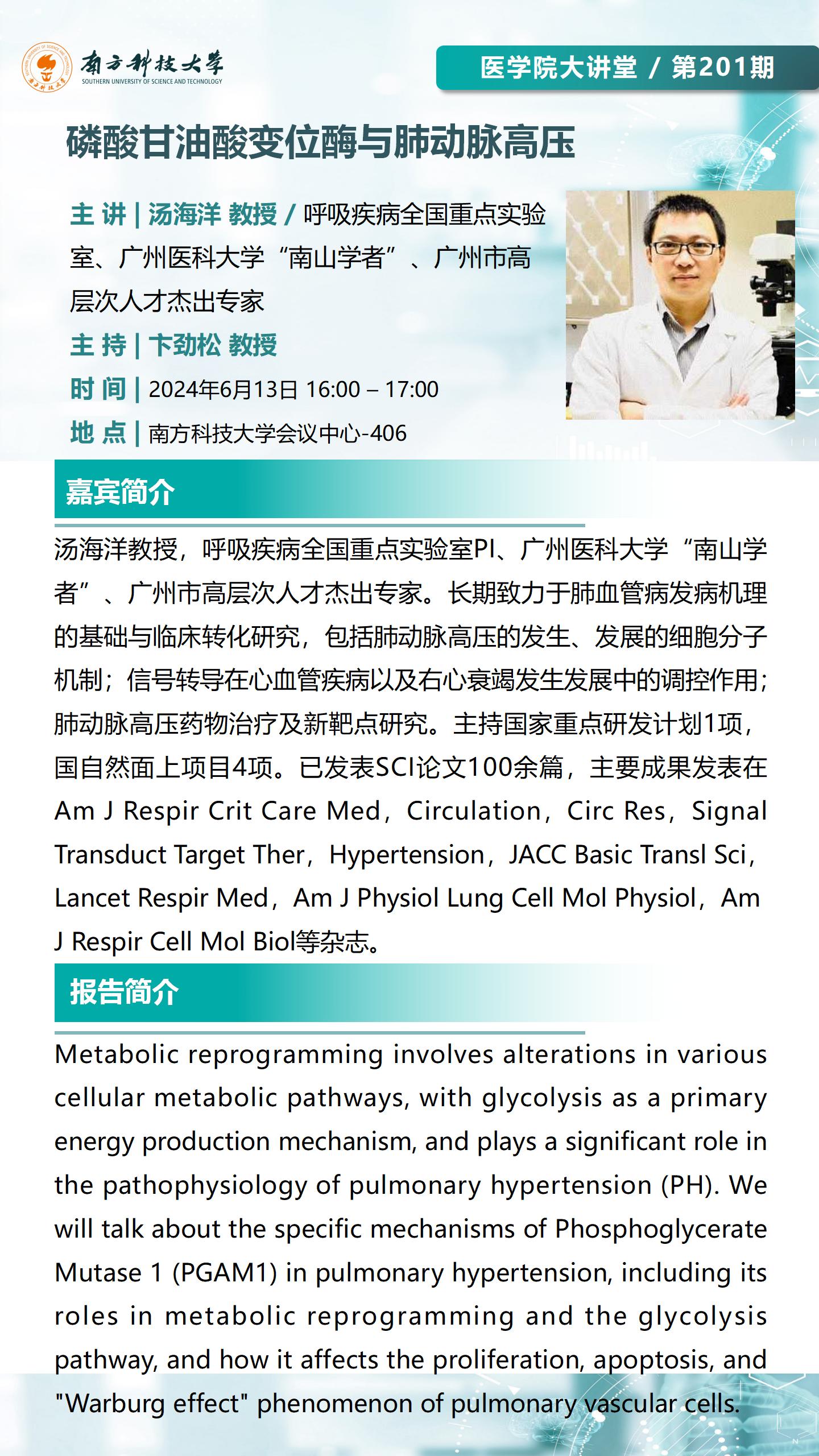 演讲者:汤海洋 教授