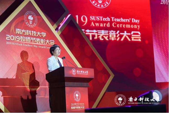 On the eve of National Teachers’Day, Southern University of Science and Technology (SUSTech) held its annual Teachers’Day Award Ceremony that rewarded a wide range of teaching, research and administrative positions around campus. SUSTech University Council Chairperson Guo Yurong, SUSTech President Chen Shiyi, Runyang Group Chairman Yang Jun and Runyang Group Chief Financial Officer Liu Feiming were among the luminaries in attendance. SUSTech Vice President Lu Chun presided over the ceremony.