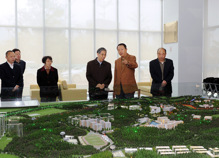 李铭向王文生介绍了我校的基础建设和二期规划,并陪同参观校园。