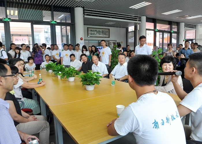 2015年8月30日至31日,我校迎来2015级本科新生。900多名莘莘学子汇聚在南海之滨、深圳湾畔的南方科技大学美丽校园,开启他们人生绚烂缤纷的旅程,他们将在这里度过人生最宝贵和难忘的四年大学生活。31日上午,我校党委书记李铭、校长陈十一、副校长覃正、副校长吴传跃、秘书长董朝君、总务长鲁春、总会计师叶秦、筹备办副主任韩蔚等校领导班子成员到书院看望了2015级新生和家长。