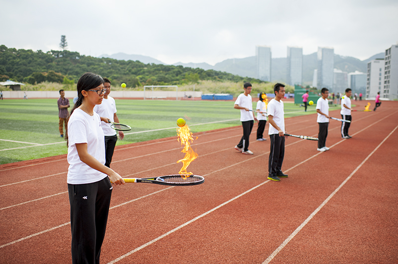 8时25分,当所有队伍、方阵准备就绪时,主席台前方突然窜起第一簇火焰,两簇、三簇……一簇簇火焰亮起,燃烧着激情与活力。紧接着,火焰跳起来了,像一个个火热的精灵!仔细一看,原来是一颗颗燃烧的网球,这是网球表演方队带来的精彩预热表演。在吴传跃副校长的主持下,开幕式正式开始。各书院的学生代表和各院系、各部门的教职工代表排着方阵,迈着整齐的步伐闪亮登场。