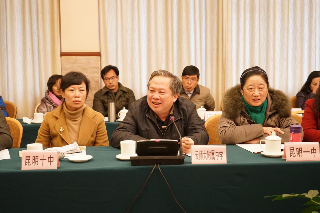 参加座谈会的中学领导在会上发言
