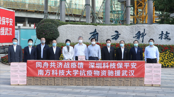 2020年2月26日,“同舟共济战疫情 深圳科技保平安”——南方科技大学抗疫物资捐赠交接仪式在南科大校园举行。由南科大材料科学与工程系副教授孙大陟团队自主研发的防雾新材料——60万片防雾酒精湿巾和2万瓶防雾酒精喷剂,火速驰援抗击新冠病毒肺炎疫情的主战场湖北省。