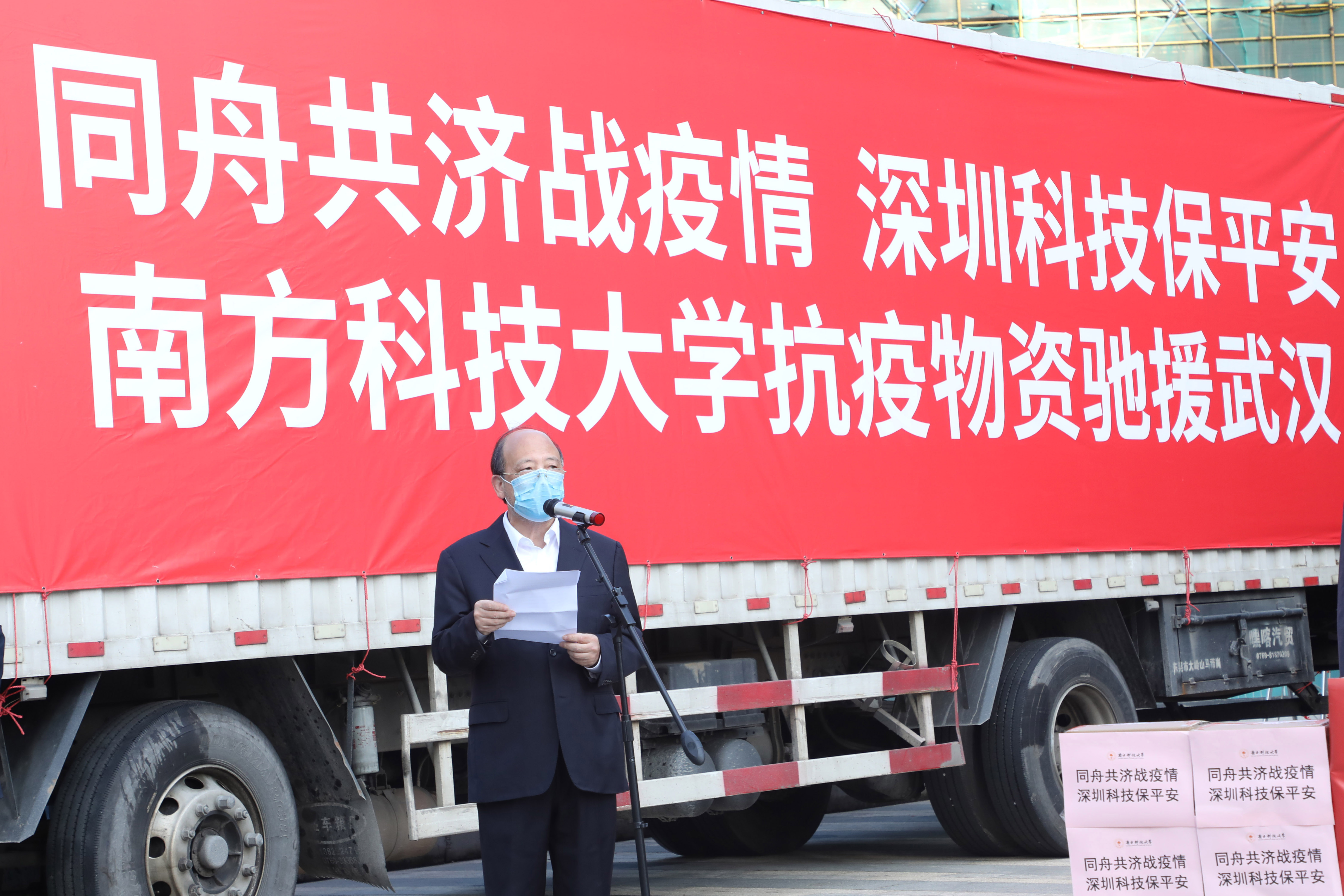 陈十一代表全体南科大人,向奋战在防疫一线的工作人员致以最崇高的敬意。他表示,新冠肺炎疫情发生以来,学校在深圳市委市政府的坚强领导下,第一时间全方位开展防疫工作。在这场没有硝烟的“战疫”中,南科大将充分发挥新时代研究型大学的人才和科研优势,积极贡献自己的力量。此次捐赠只是开始,下一步南科大将继续加紧科研攻关,把更多自主研发的科技成果送到防疫一线。“让我们共同努力,武汉加油!湖北加油!中国加油!”