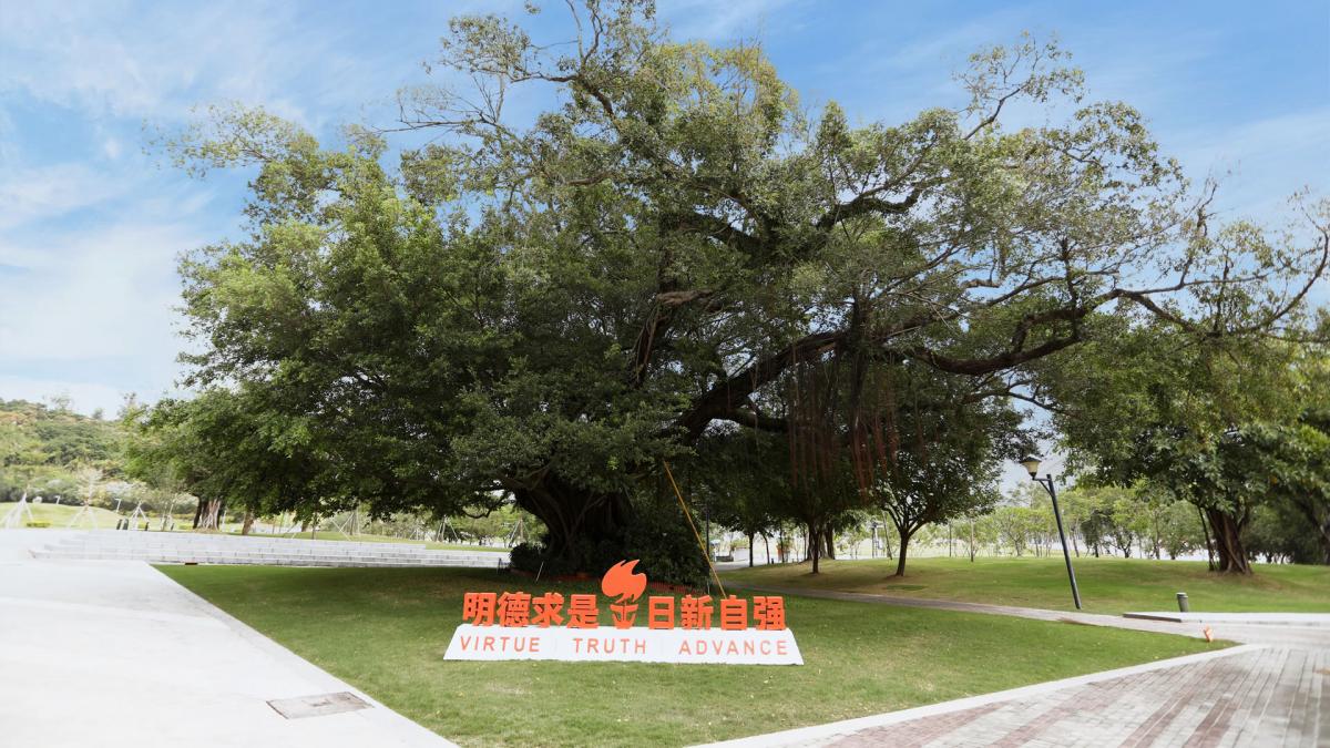 南方科技大学校训为:明德求是,日新自强(Virtue, Truth, Advance)。