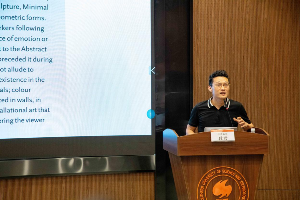 2024年6月23日上午,南科大讲堂第369期暨“博观讲堂”第五讲在我校一丹图书馆301报告厅举行。中国文化艺术发展促进会当代艺术院研究员、中国美术批评家年会副秘书长段君为师生带来题为“秩序感与物质性——极简主义艺术”的专题报告。安徽中环艺术馆执行馆长、艺术总监齐廷杰担任现场学术主持。师生代表及艺术家代表、兄弟单位代表等近百人参加活动。