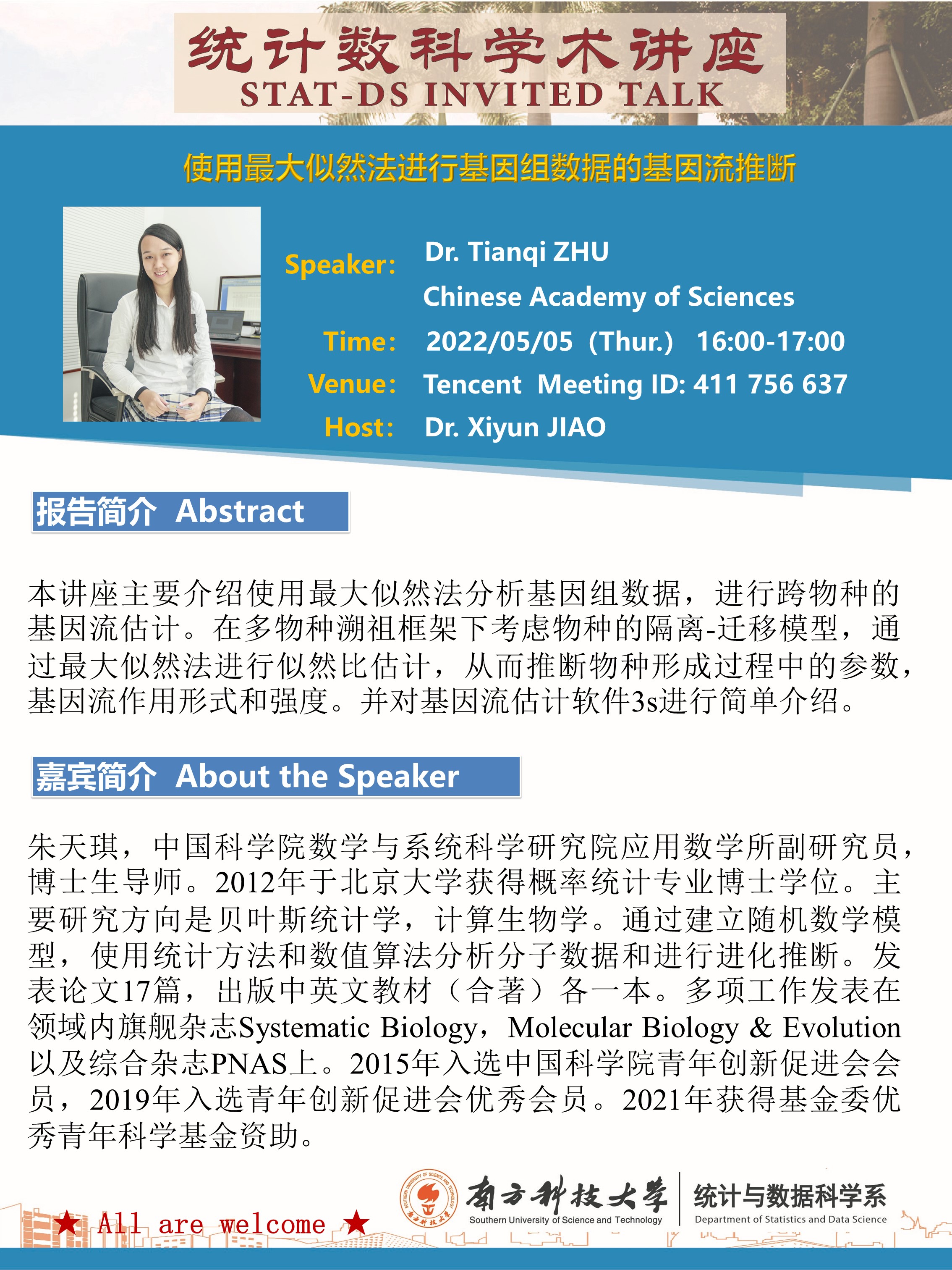 演讲者:Dr. Tianqi ZHU, Chinese Academy of Sciences